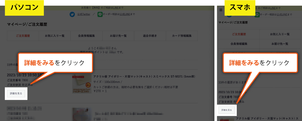 納品書・領収書(インボイス対応)が「マイページ」の「購入履歴」より直接印刷いただけるようになりました。