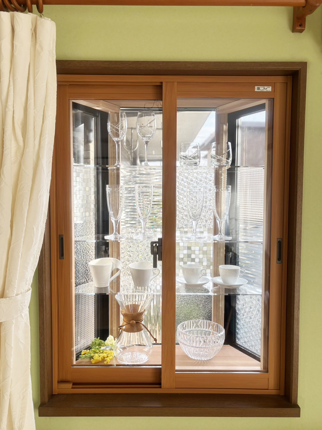 リビングの内窓リフォームにあたり、出窓を食器戸棚にすることにしました。