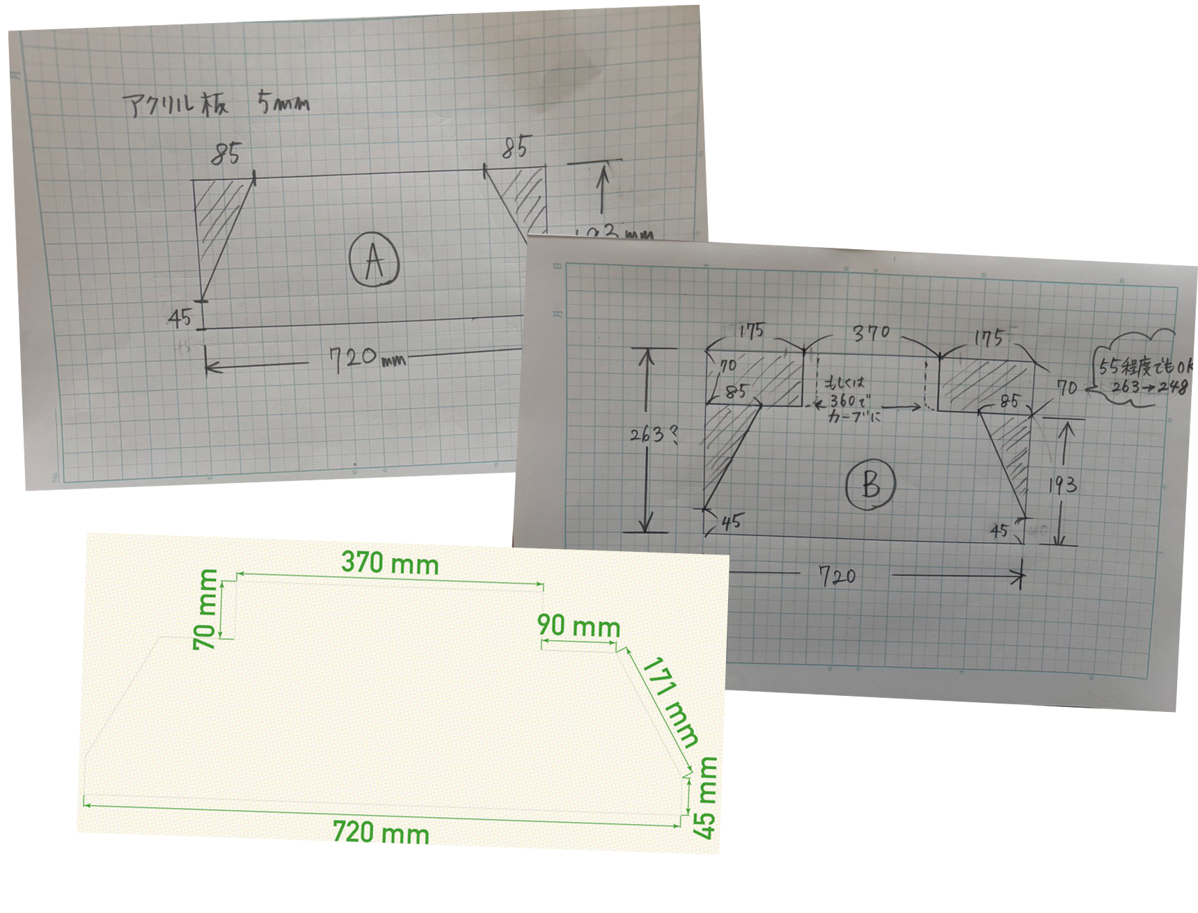 何度かご相談をいただき、手書き図面をやり取りしながら最終的には弊社で図面データを作成。