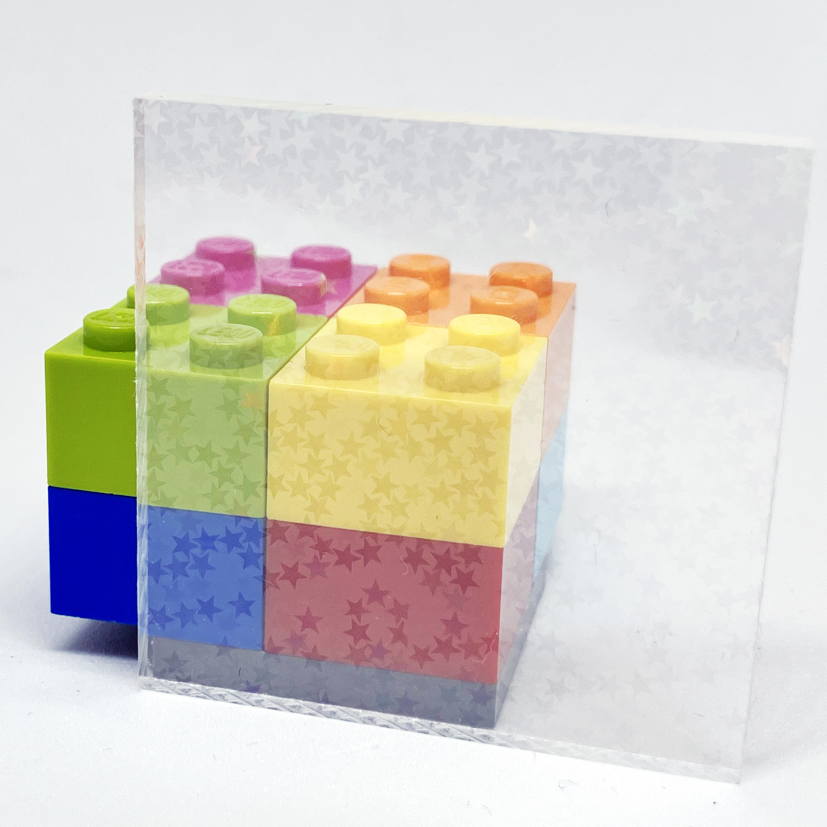 PETフィルム(ホログラム)を貼り付けたアクリル板です。