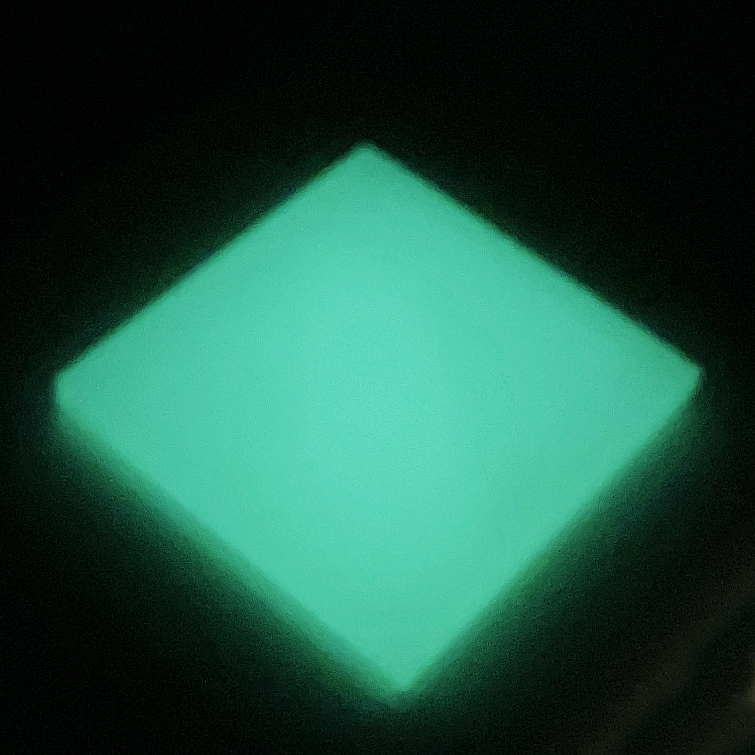太陽光や電灯の光を蓄え暗闇で光るアクリル板です。