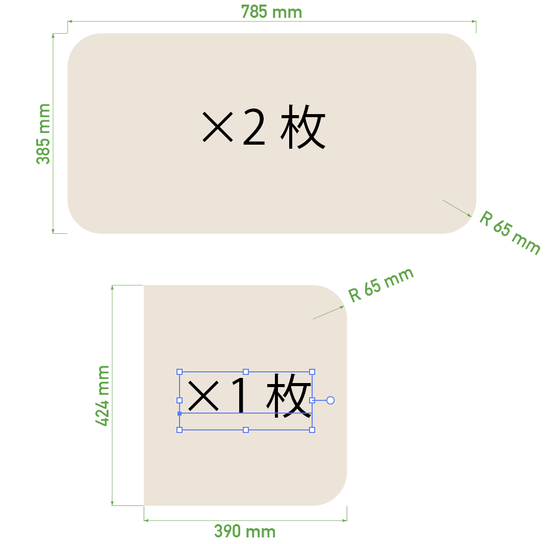 ・785 × 385ミリ(R65×4)×2枚