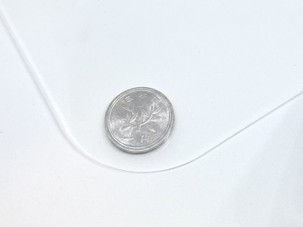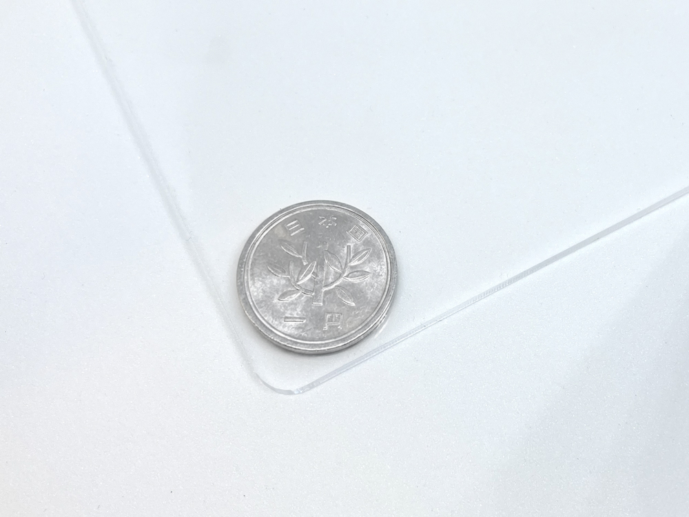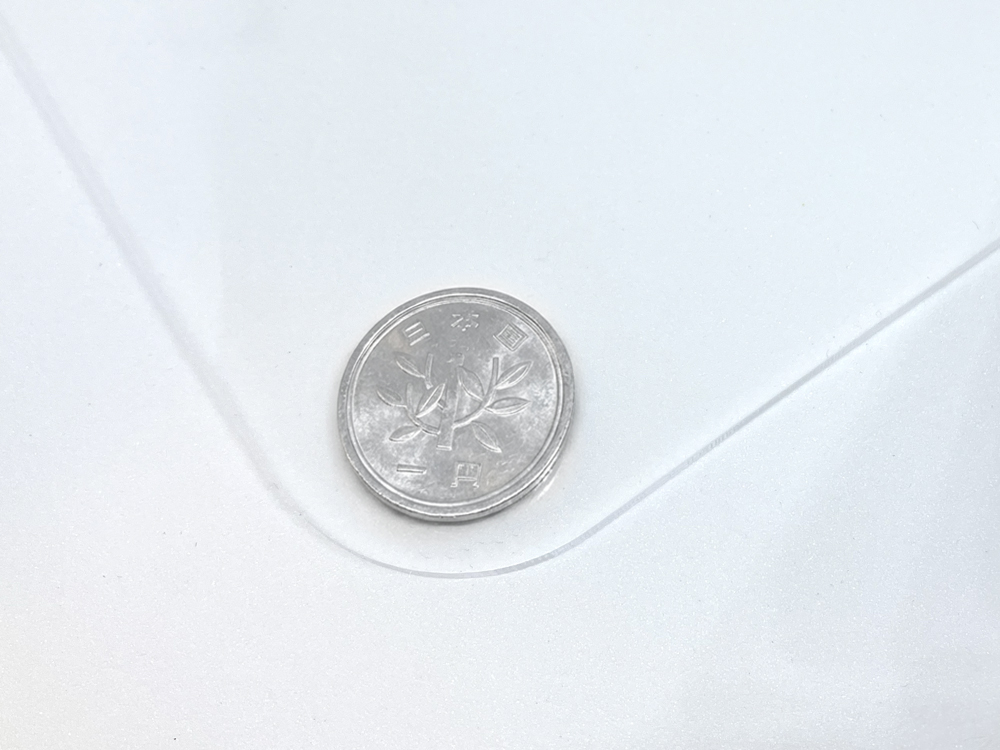 よく利用される4 パターンの R 加工を施したアクリル板に1円玉を置いてサイズ感を比較しました。