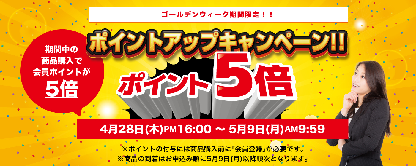 この会員ポイント還元が期間中「5倍(100円で5ポイント)」となります。